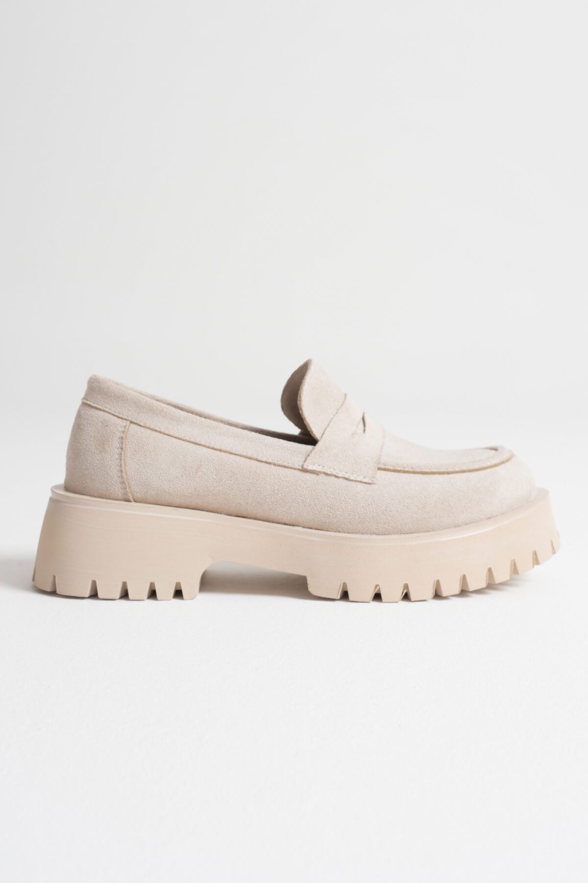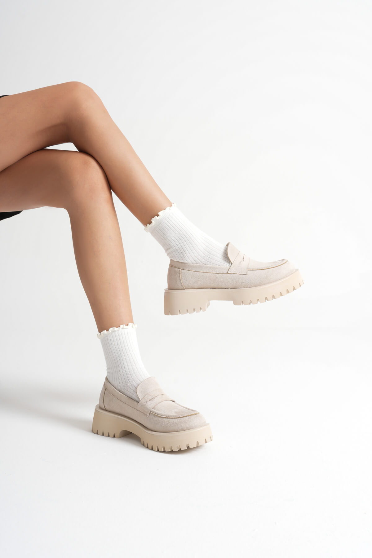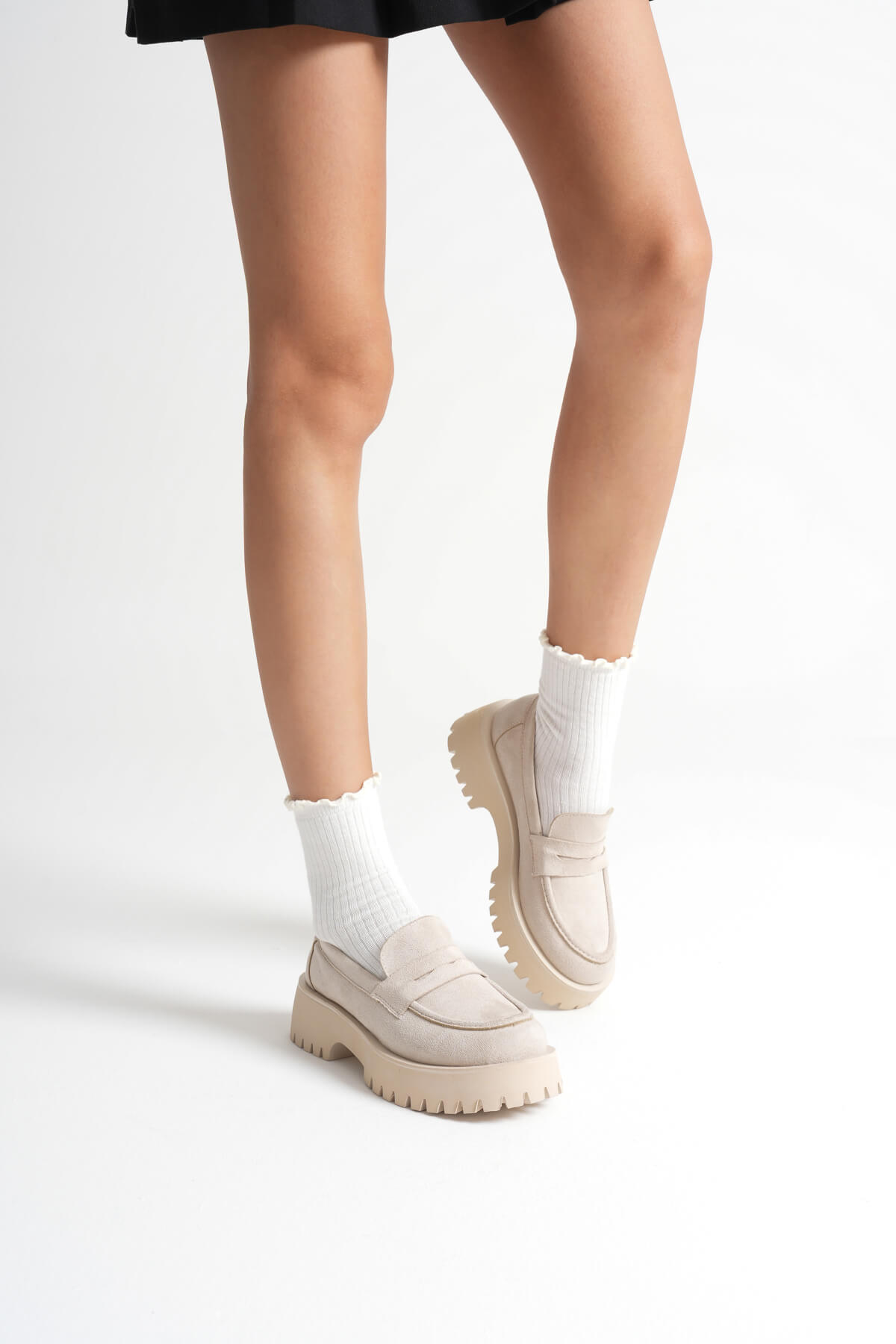 Lara Toka Detaylı Bej Süet Günlük Loafer Ayakkabı