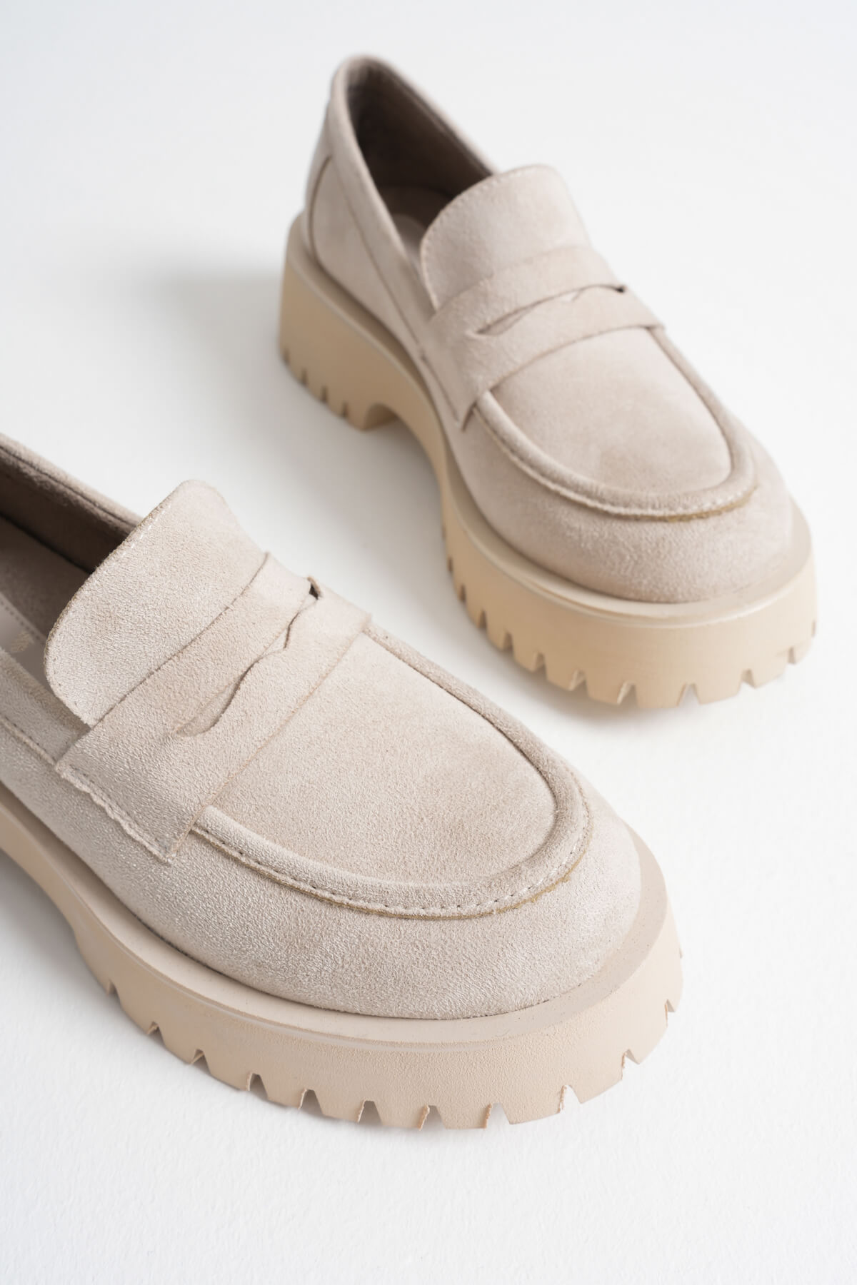 Noir Kadın Günlük Bej Süet Loafer Ayakkabı