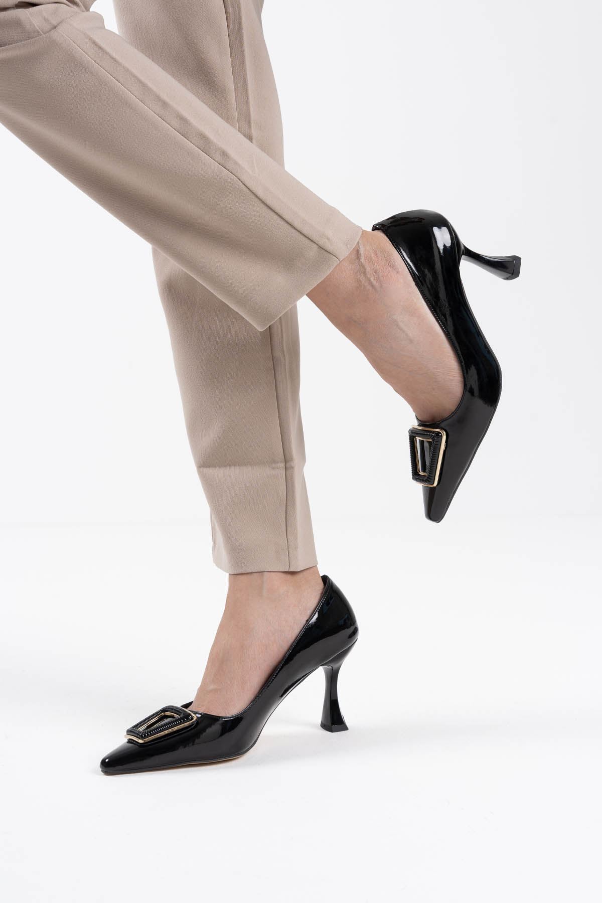 Cali Siyah Rugan Kadın Topuklu Ayakkabı