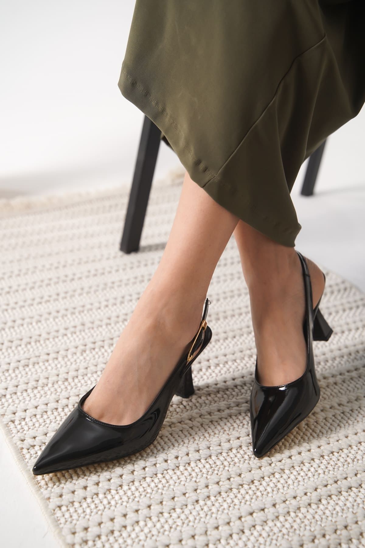 Cali Siyah Rugan Kadın Topuklu Ayakkabı