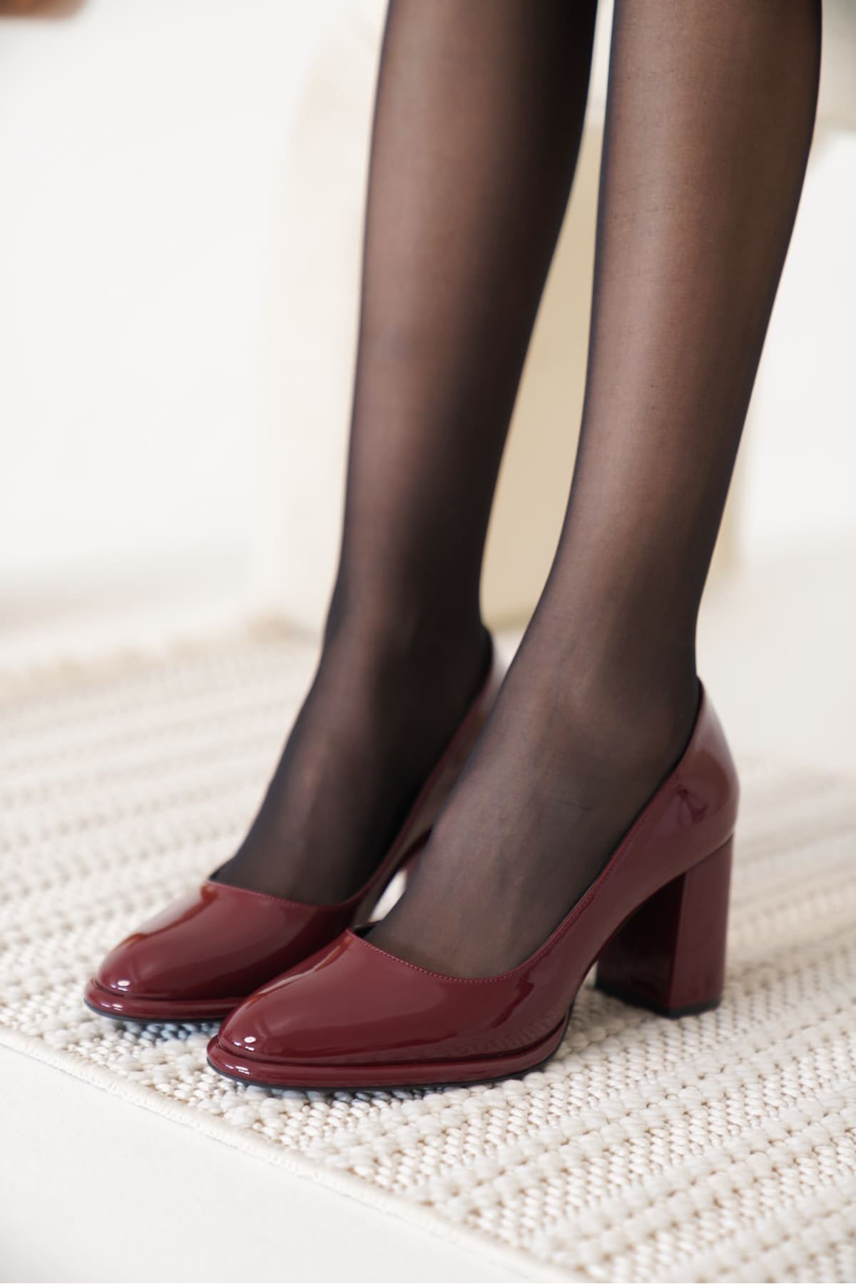 Doren Bordo Rugan Kadın Topuklu Ayakkabı