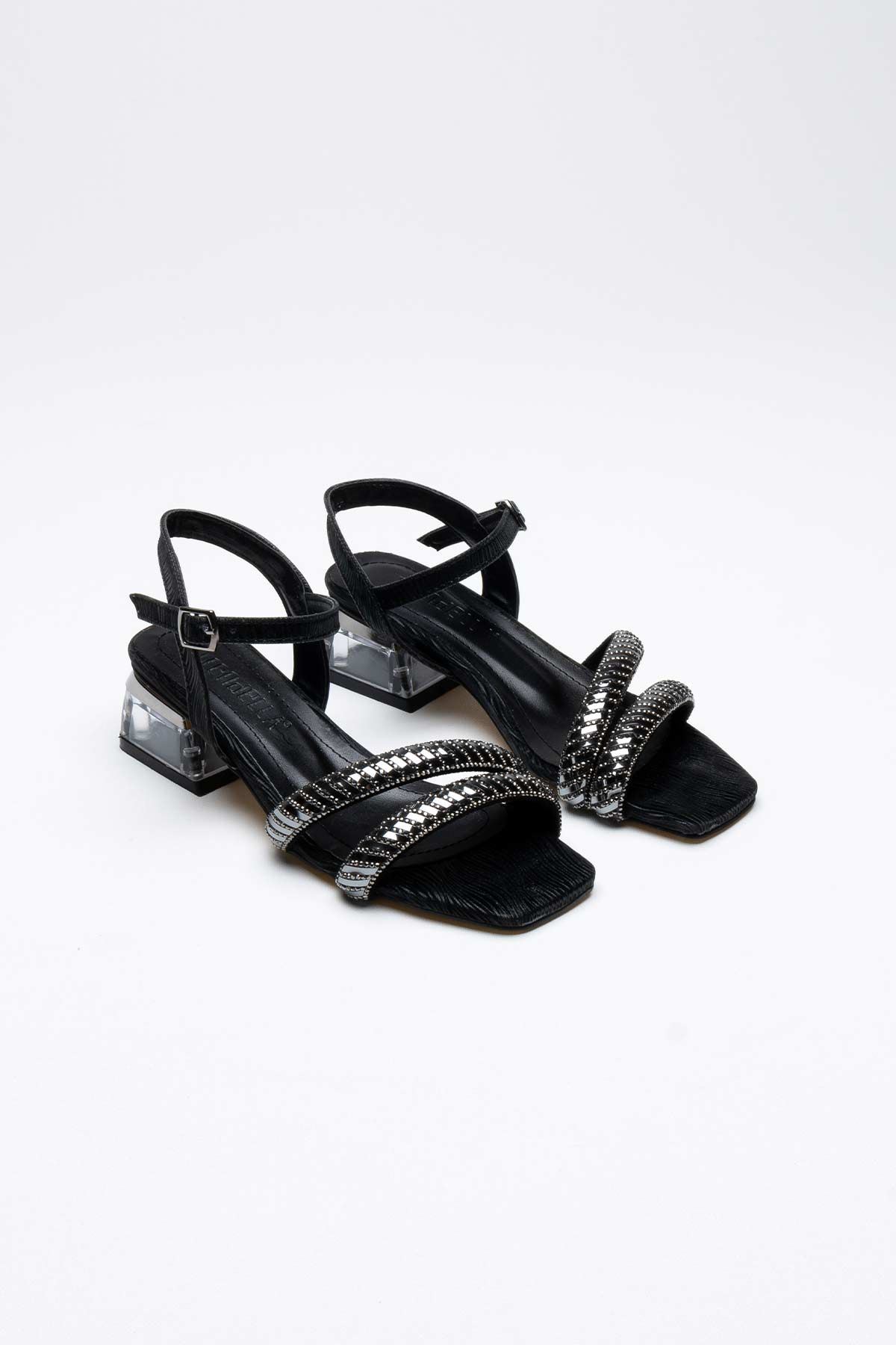 Rule Siyah Taşlı Kadın Topuklu Sandalet