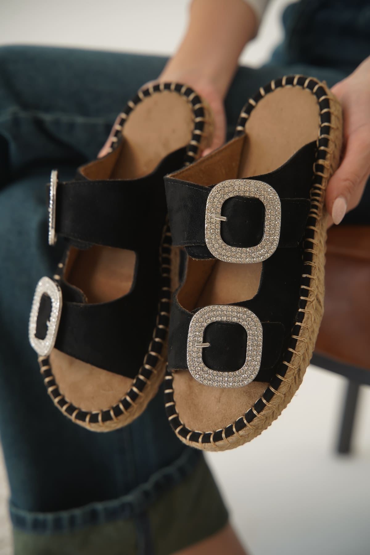 Tyna Süet Siyah Taşlı Kadın Terlik
