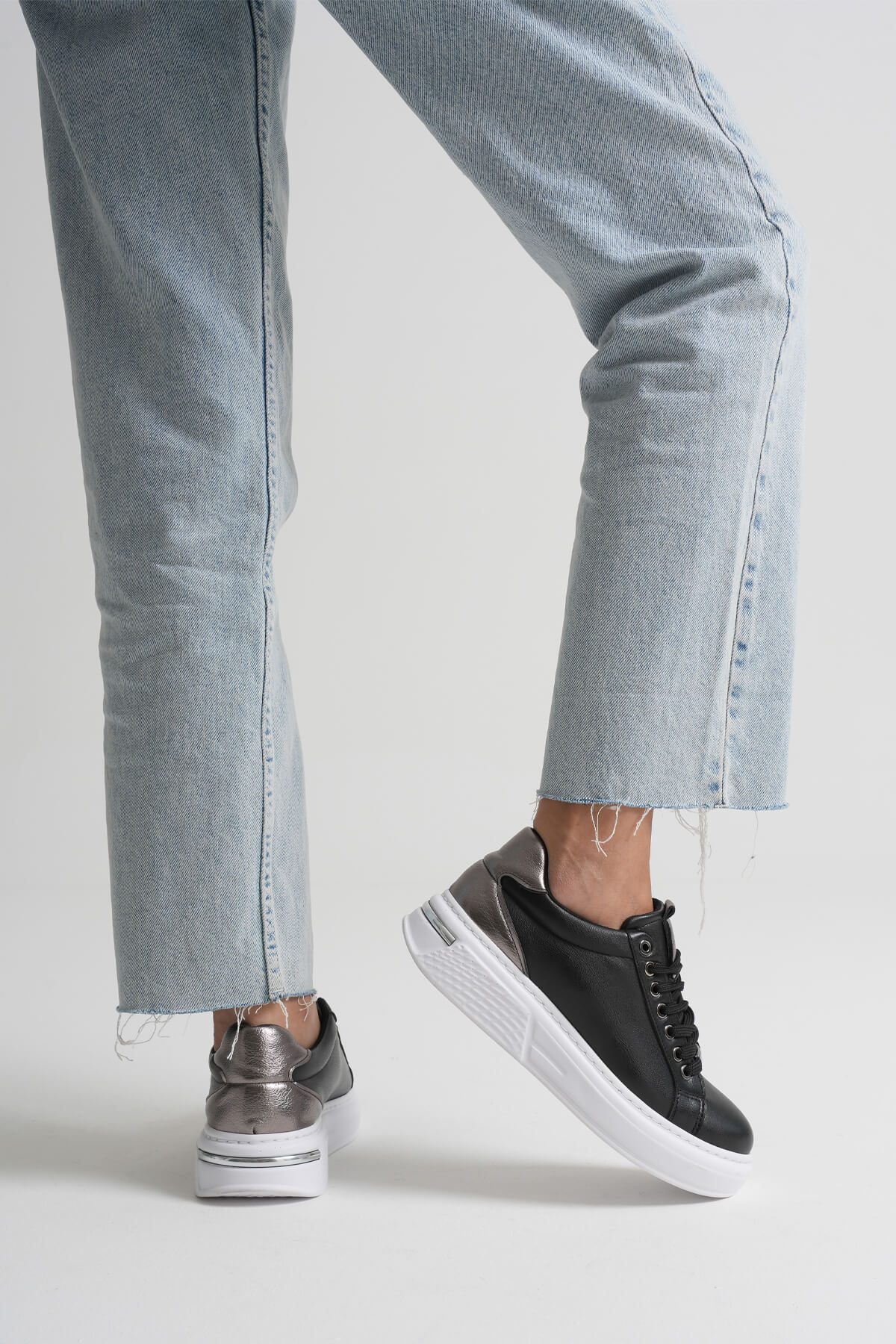 Nova Kadın Gümüş Detaylı Siyah Sneaker
