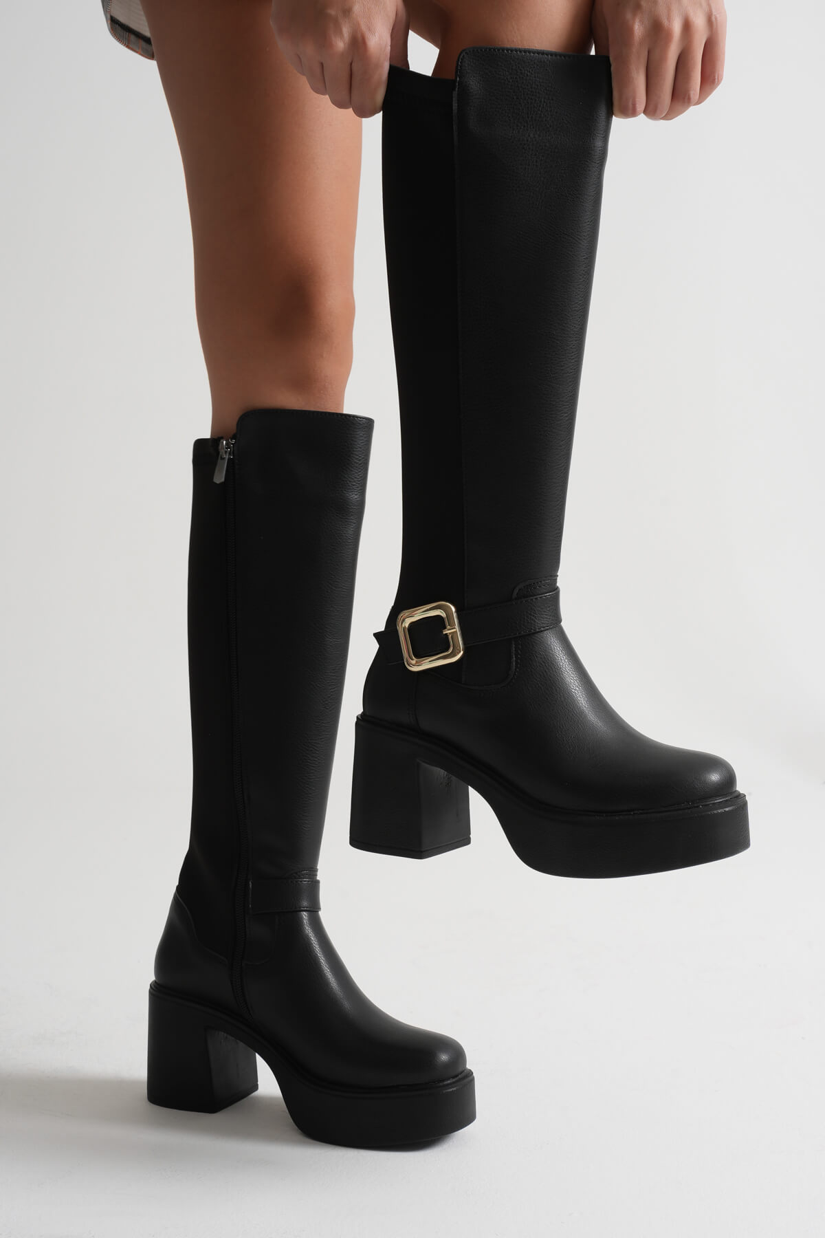 Woly Kadın Günlük Siyah Tokalı Çizme